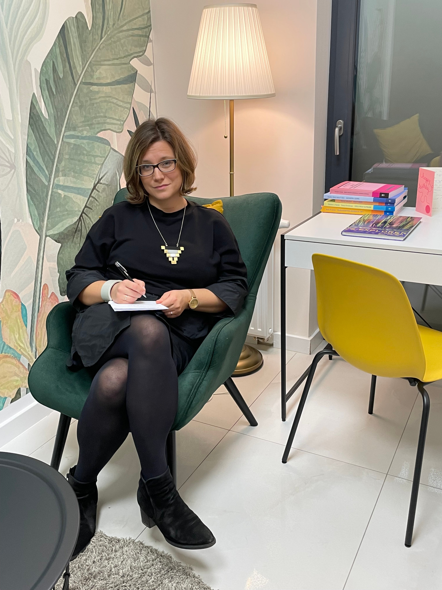 Jestem psychologiem z 16-letnim doświadczeniem zawodowym. Ukończyłam studia magisterskie na Uniwersytecie Jagiellońskim na kierunku psychologia w 2006 roku. Pracowałam w różnych dziedzinach psychologii – począwszy od pracy z młodzieżą w obszarze doradztwa zawodowego, poprzez pracę warsztatową i szkoleniową dla młodzieży i osób dorosłych, a w ostatnim czasie – wsparcie psychologiczne i terapię osób, które znalazły się w kryzysowej sytuacji życiowej. Aktualnie pracuję z klientami w nurcie terapii skoncentrowanej na rozwiązaniu oraz terapii systemowej. Ukończyłam 2-letnie szkolenie z zakresu psychoterapii systemowej w Ośrodku Szkoleń Systemowych w Krakowie, a także I stopień Terapii Skoncentrowanej na Rozwiązaniu.